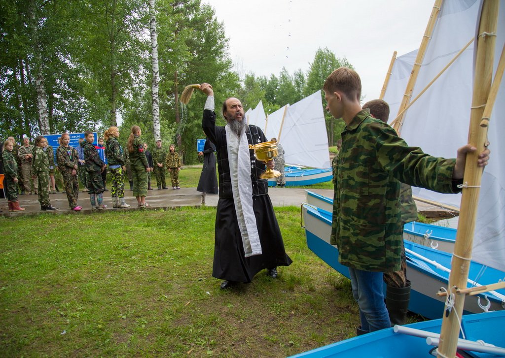 На церемонии торжественного открытия лагеря выступил председатель Епархиального отдела по взаимодействию с Вооруженными силами и правоохранительными учреждениями, благочинный Богородского церковного округа протоиерей Михаил Ялов и начальник противопожарной службы 179 спасательного центра