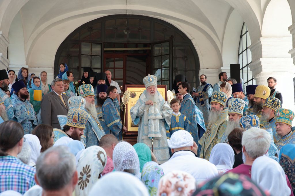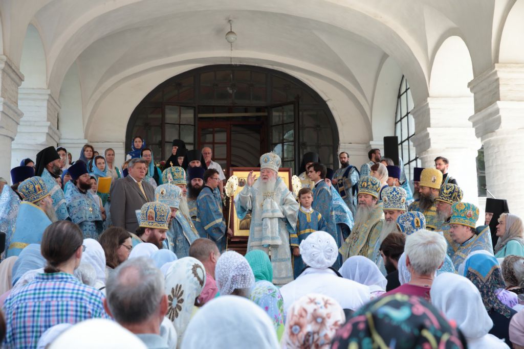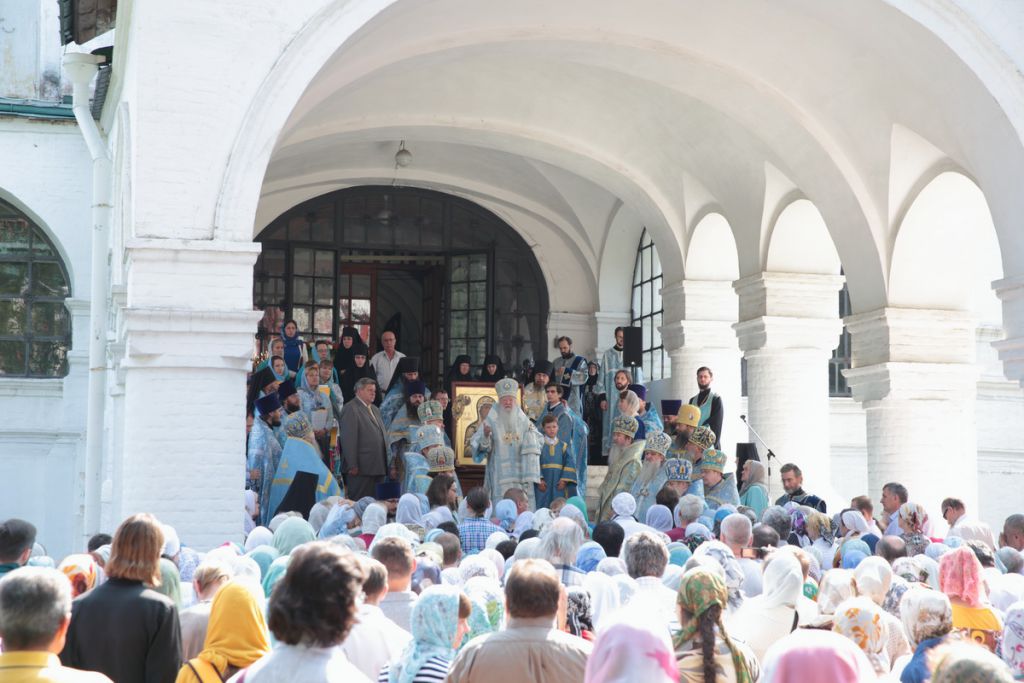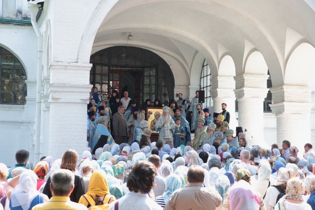 По окончании Божественной литургии духовенством, многочисленными прихожанами и паломниками монастыря был совершен крестный ход вокруг Смоленского собора, после чего митрополит Ювеналий обратился ко всем собравшимся со словами приветствия: