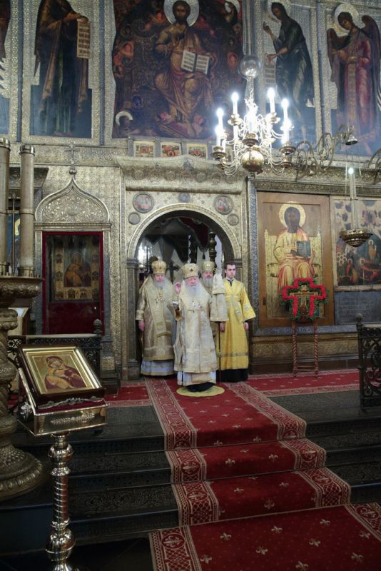 Мы сегодня продолжаем празднование Воздвижения Креста Господня. Воспеваем страдания Христовы и воскресение Его, потому что это смысл нашей христианской жизни: совершая земное поприще, мы готовим себя ко всеобщему воскресению и в надежде на Божие милосердие к нам в Царствии Небесном. В 1406 году скончался святитель Киприан, 30 лет связанный с Русской Православной Церковью, управляя ею в сложные времена истории нашей земли. Но никакие трудности не помешали ему — его благочестию, его ревности о Господе. В этот первосвятительский период много было сделано для просвещения, для строительства храмов и монастырей. Его цельбоносные мощи, почивающие рядом с его приемником — святителем Фотием, напоминают нам, что и сегодня он наш небесный покровитель и предстатель пред Господом и Спасителем нашим. И сегодня еще мы отмечаем среди множества святых память святой мученицы Людмилы Чешской. Многие из вас находящихся сегодня в храме носят это святое имя и причастились святых Христовых Таин. Я горячо и сердечно поздравляю вас с этим праздником — днем ангела, с принятием святых Христовых Таин, как и всех, кто сегодня сподобился этого Таинства.