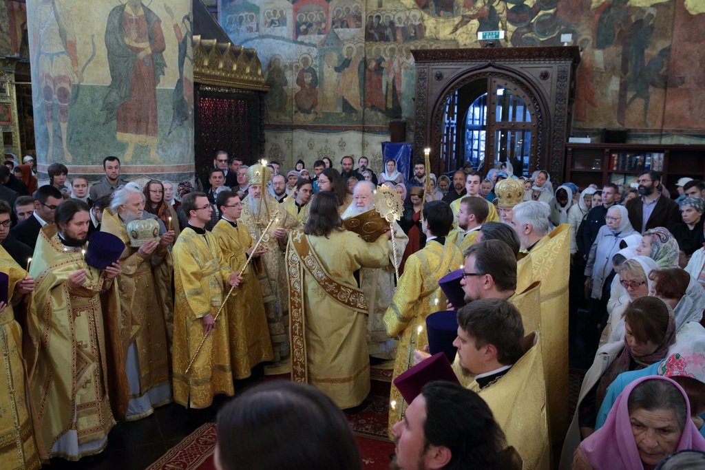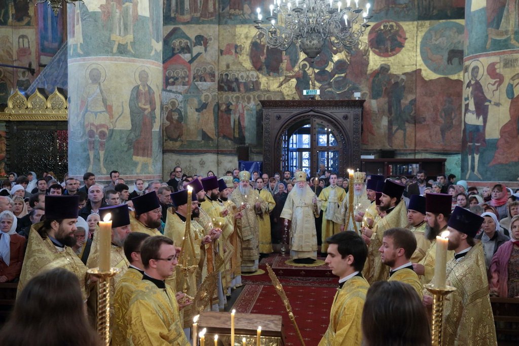 По благословению Святейшего Патриарха Кирилла мы сегодня, в день памяти святителя Киприана, совершили Божественную литургию в Успенском соборе Московского кремля. Радостно мне сегодня видеть всех вас. Особенно духовенство Московской епархии и прихожан из разных уголков нашего Подмосковья, которые вместе соединились в молитве к Господу.