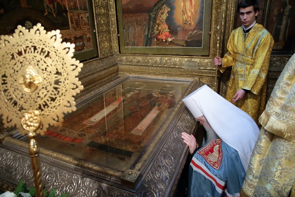 После богослужения и поклонения Кресту было совершено молебное пение у гробницы святителя Киприана. Затем митрополит Ювеналий обратился к участникам праздничного богослужения с архипастырским словом: