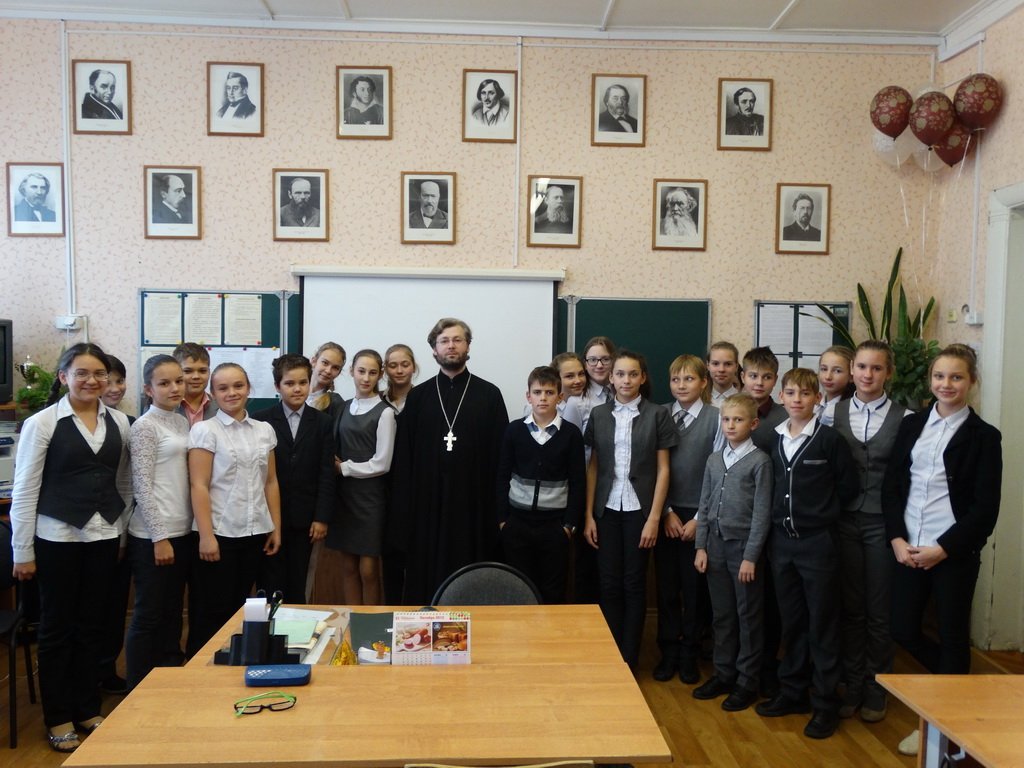 28 октября клирик Никольского храма г. Шатуры священник Александр Боярских провел беседу с учениками шестого класса средней школы № 2 г. Шатуры о житии равноапостольного князя Владимира.