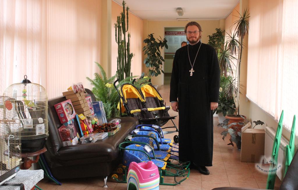 13 ноября ответственный за работу с молодежью в Орехово-Зуевском благочинии священник Димитрий Филин передал в специализированный дом ребенка г. Орехово-Зуево вещи и игрушки для воспитанников учреждения. Средства на приобретение подарков были выручены в ходе благотворительной ярмарки, организованной 4 ноября приходами Орехово-Зуевского благочиния на территории Богородицерождественского собора г. Орехово-Зуево.