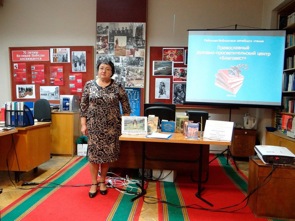 19 ноября руководитель православного духовно-просветительского центра «Благовест» г. Щелково С. А. Иванова была приглашена в Звездный городок коллегами из библиотеки Дома космонавтов. Библиотекарям и членам клуба любителей книги «Вечера» был представлен видео-рассказ об истории духовно-просветительского центра «Благовест» при районной библиотеке семейного чтения в г. Щелково, о сотрудничестве с Щелковским благочинием и образовательными учреждениями Щелковского района. Во второй части встречи С. А. Иванова рассказала о житии преподобного Сергия Радонежского. О Свято-Троицкой Сергиевой лавре был показан фильм «Сергиев Посад и его окрестности».