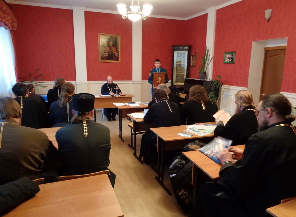 25 декабря в Богородицерождественском соборе г. Орехово-Зуево состоялось годичное собрание священнослужителей Орехово-Зуевского благочиния. На собрании был подробно изучен доклад митрополита Ювеналия, были подведены итоги деятельности благочиния в образовательной, миссионерской, информационно-издательской, социальной деятельности, в работе с молодежью и медицинскими учреждениями в 2015 году. Сотрудник отдела надзорной деятельности по Орехово-Зуевскому району УНД главного управления МЧС России по Московской области Д. А. Кубышкин провел инструктаж по противопожарной безопасности.