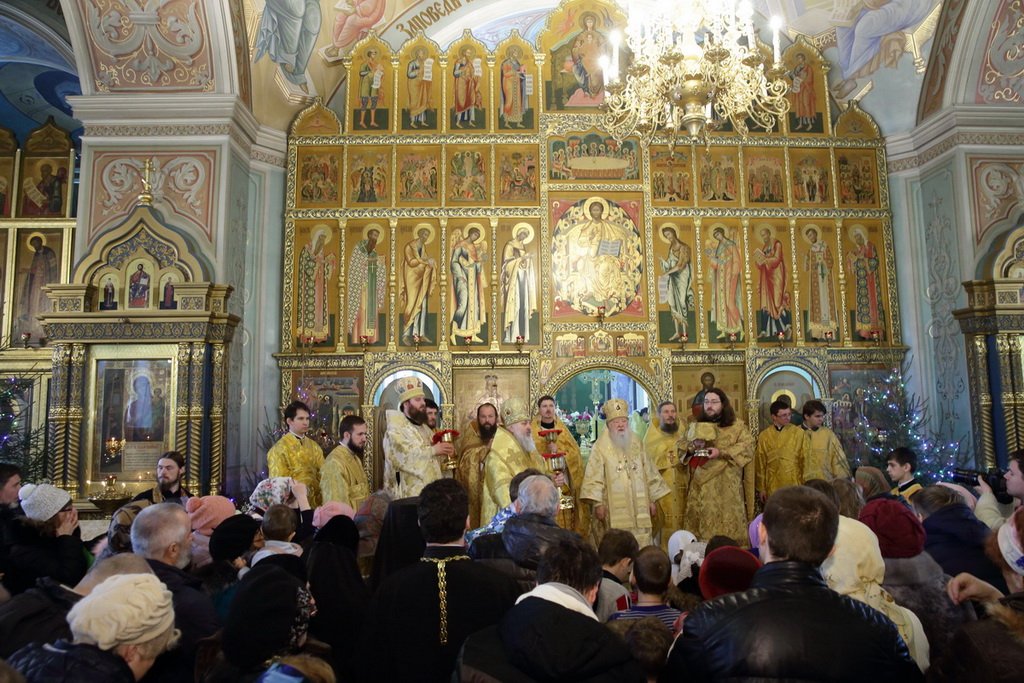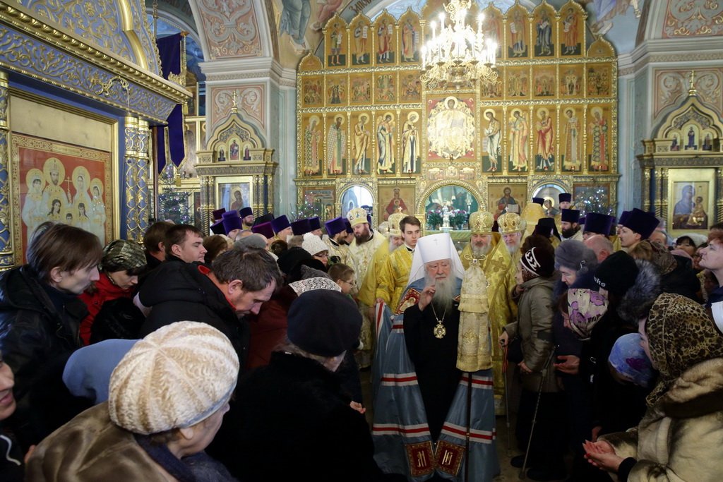 В этот Рождественский день я рад приветствовать в лице отцов благочинных всю нашу епархию, монашествующих, священнослужителей, всех, кто трудится во славу Божию. Всем мысленно передаю свое приветствие и благословение. Хочу пожелать, чтобы милость Божия никогда не оставляла нас, чтобы благословение пришедшего в мир Господа помогало нам в несении нашего жизненного креста, и чтобы покров Царицы Небесной осенял нашу Родину, и помогал нам во все дни нашей жизни. Причастников и причастниц поздравляю с принятием Святых Христовых Таин и на всех вас призываю Божие благословение!».