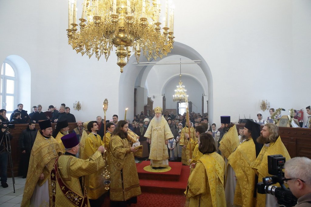На улице у храма Владыку митрополита встречали всадники из православного конного клуба «Готфы», а перед входом в храм Его Высокопреосвященство приветствовали воспитанники Детского корпуса «Никита», которые преподнесли ему хлеб-соль.