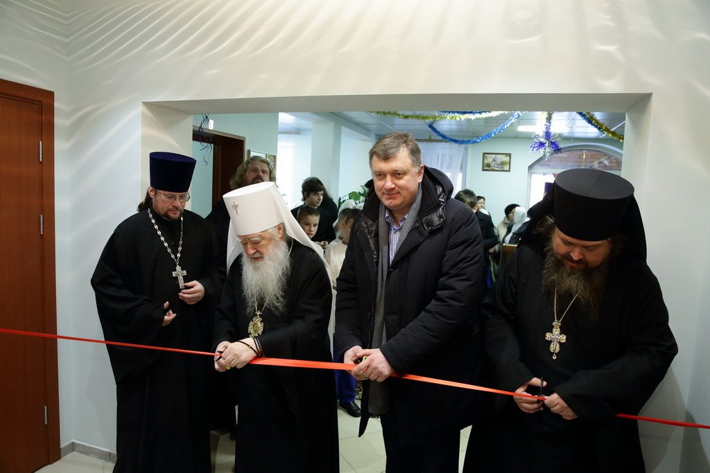 После торжественного богослужения состоялось открытие нового здания Детского корпуса «Никита». Красную ленту при входе в здание перерезали митрополит Ювеналий, глава Павлово-Посадского района О.Б. Соковиков и настоятель Никитского храма игумен Амвросий (Шевчук). Затем Владыка митрополит освятил новое здание приюта, обустройство которого было закончено буквально на днях. Большой корпус, рассчитанный на 40 детей, был возведен по благословению и при поддержке митрополита Ювеналия.