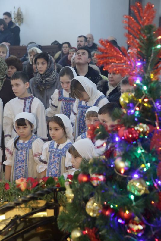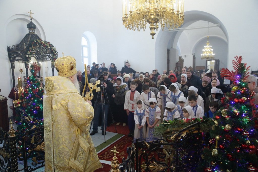 По завершении богослужения духовенство совершило славление Рождеству Христову, после чего митрополит Ювеналий обратился ко всем присутствующим с архипастырским словом: