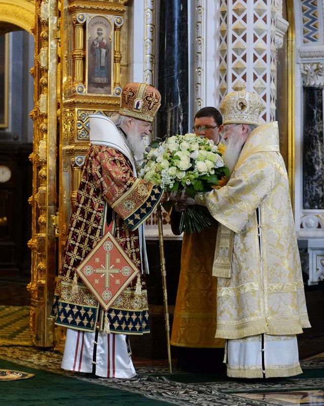 В сугубую ектению были включены особые прошения о ныне чествуемом Святейшем Патриархе Московском и всея Руси Кирилле.