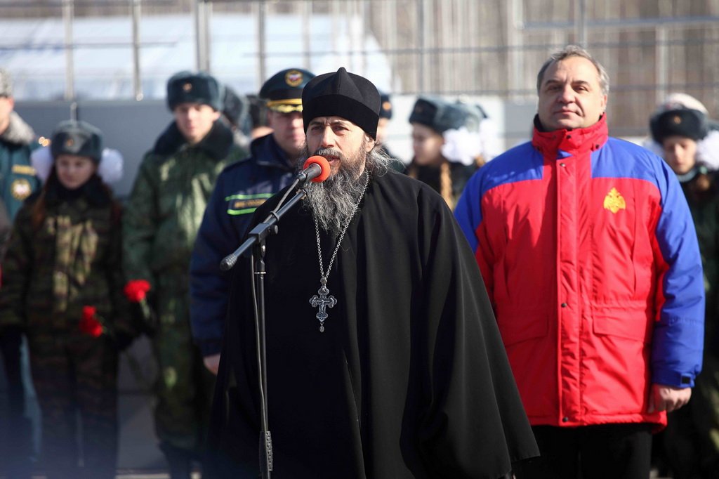 26 марта в Ногинский спасательный центр МЧС России вернулась юбилейная пятидесятая автоколонна, доставившая на Донбасс гуманитарную помощь: продовольствие, медикаменты и предметы первой необходимости. Во встрече колонны принял участие министр Российской Федерации по делам гражданской обороны, чрезвычайным ситуациям и ликвидации последствий стихийных бедствий Владимир Пучков, который поблагодарил спасателей за выполненную задачу и наградил особо отличившихся в этой миссии. Председатель Епархиального отдела по взаимодействию с Вооруженными силами и правоохранительными учреждениями, благочинный церквей Богородского округа протоиерей Михаил Ялов передал собравшимся благословение митрополита Ювеналия и обратился к спасателям с приветственным словом.