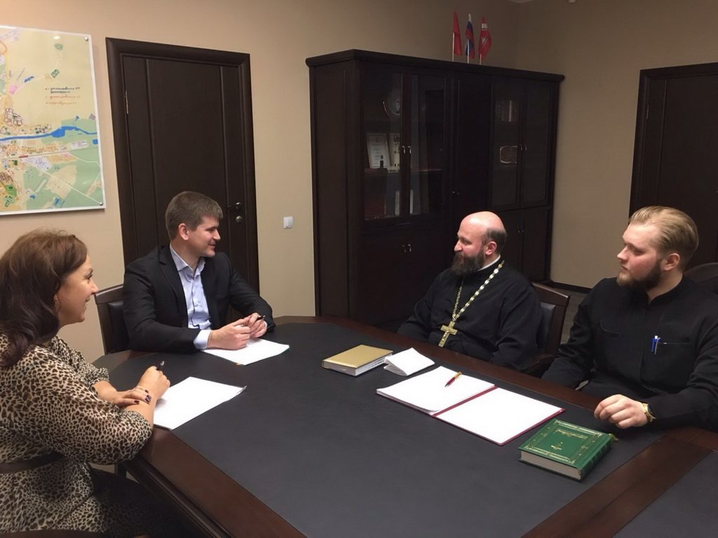 7 апреля в администрации городского округа Орехово-Зуево состоялась рабочая встреча благочинного церквей Орехово-Зуевского округа протоиерея Андрея Коробкова и главы городского округа Г. О. Панина. Во время встречи благочинный округа и глава города обсудили вопросы подготовки к проведению совместных мероприятий к 100-летию города Орехово-Зуево и дальнейшего сотрудничества. На встрече также присутствовали временно исполняющая обязанности руководителя администрации г. Орехово-Зуево Т. И. Павлова и клирик Богородицерождественского собора г. Орехово-Зуево диакон Павел Скрипник.