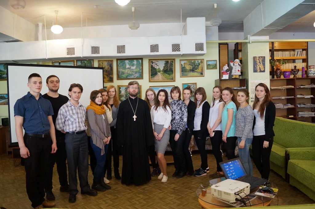 20 апреля в центральной библиотеке г. Шатуры клирик Никольского храма г. Шатуры священник Александр Боярских встретился с учащимися 11-х классов средней школы № 4 г. Шатуры. Священник провел с ребятами беседу на тему: «Первая любовь, семья, верность».