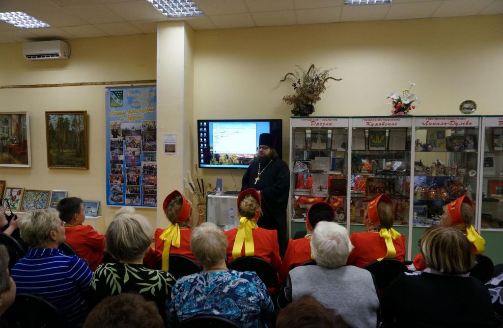 4 октября в Орехово-Зуевском районном краеведческом музее г. Ликино-Дулево в рамках проекта «Поселения земли Орехово-Зуевской» прошла презентация сельского поселения Малодубенское Орехово-Зуевского района. На мероприятии присутствовали директор музея И. П. Ширина, представители местной администрации, жители города и района, а также настоятель Преображенского храма села Малая Дубна протоиерей Ярослав Шелест.