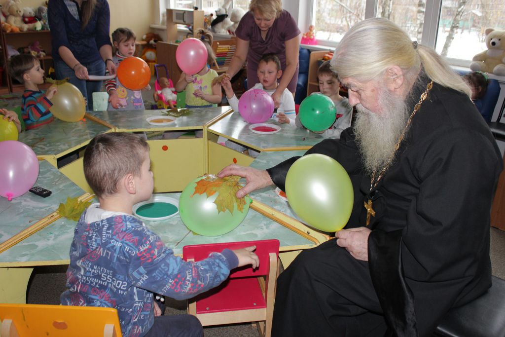 31 октября прихожане Троицкого храма г. Электроугли во главе с настоятелем протоиереем Александром Лыковым побывали в гостях у воспитанников электроуглинского детского сада № 41. Для детей подготовили интерактивное представление «Проводы осени», по окончании которого всем ребятам были розданы подарки.