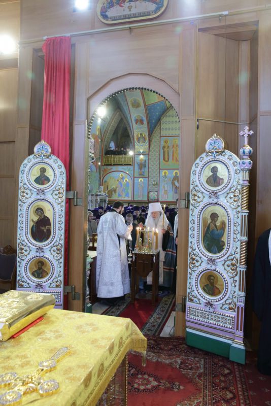 Митрополит Ювеналий огласил поздравительный адрес архиепископу Григорию.