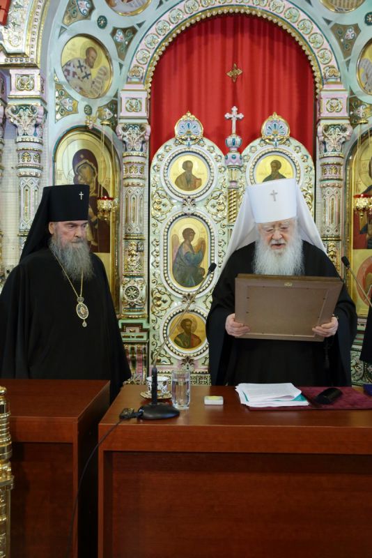 По окончании выступления к Владыке митрополиту обратился архиепископ Григорий, который поблагодарил Его Высокопреосвященство за произнесенный доклад и отметил необходимость его изучения на приходском и благочинническом уровне. Он передал в дар митрополиту Ювеналию Феодоровскую икону Божией Матери, вышитую бисером.