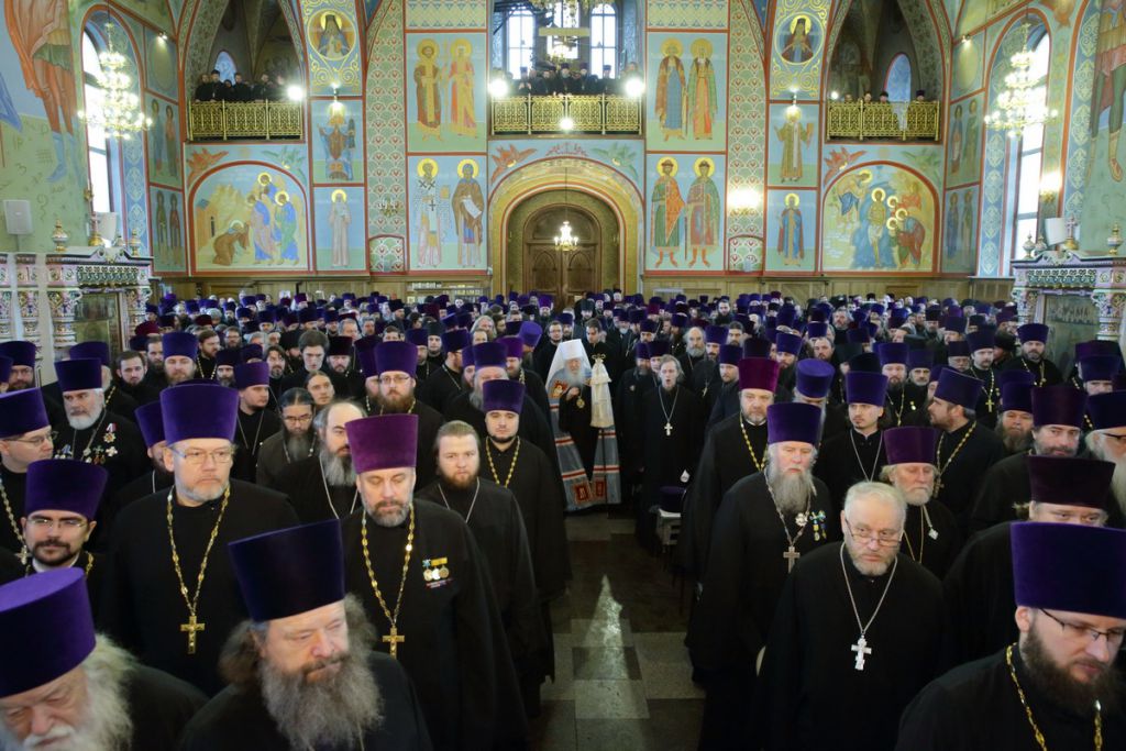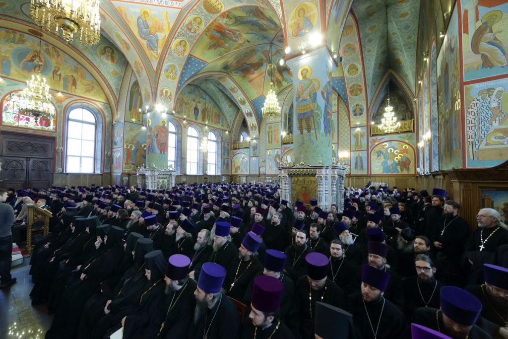 По окончании заупокойной молитвы Владыка Ювеналий приветствовал собравшееся в Троицком соборе духовенство: «Возлюбленные братья архипастыри и пастыри, отцы игумены, матушки игумении, настоятели храмов и священнослужители, дорогие братья и сестры! Я очень рад приветствовать вас – всех, кто несет свое служение в Московской епархии. Для меня такая встреча – особенная радость и вдохновение. Благодарю вас за то, что вы заблаговременно прибыли на наше собрание, несмотря на непогоду, трудные дороги, и мы имеем сейчас возможность подвести итоги уходящего года. Год длинный, епархия большая, деятельность обширная, и, если подробно обо всем сейчас говорить, мы, наверное, не справимся и до ночи. Поэтому я решил так подойти к своей миссии: у меня есть подробный доклад, который будет опубликован на сайте Московской епархии и в нашем журнале «Московские Епархиальные Ведомости», и вы будете иметь возможность ознакомиться с полным текстом доклада. Я же, снисходя к общей немощи, буду читать несколько сокращенный доклад.
