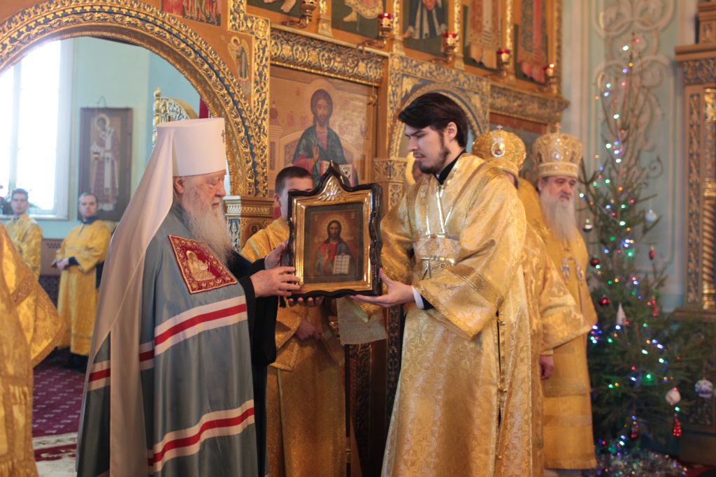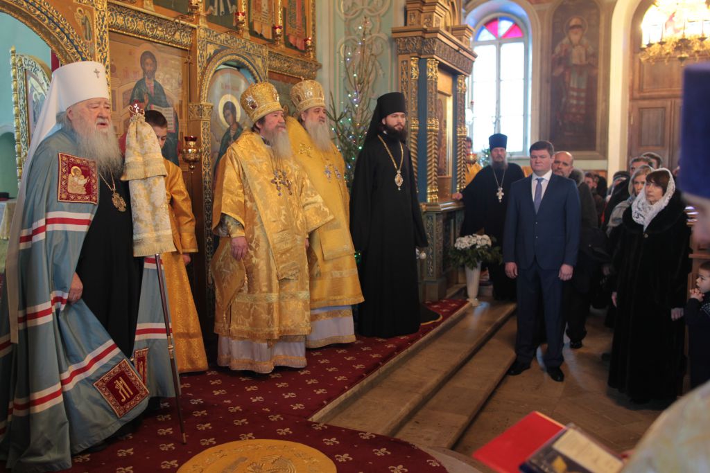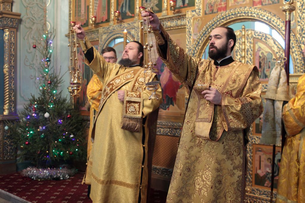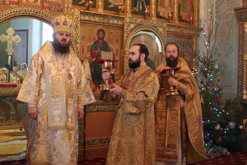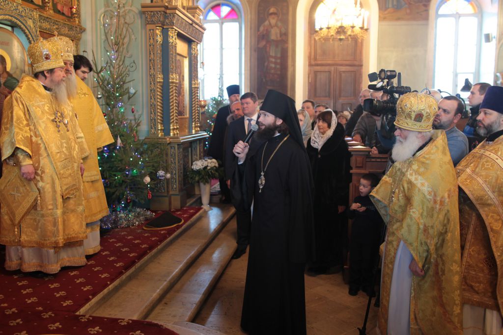 Я счастлив, что могу сегодня приветствовать здесь и властей наших, и духовенство, и вас, возлюбленные братья и сестры, как членов родной семьи — Церкви Христовой. Я поздравляю всех вас с праздником Рождества Христова, с наступившим Новолетием по гражданскому летоисчислению и на всех вас призываю Божие благословение с пожеланием многих милостей от Господа в вашей жизни и вашем служении. Пусть Господь всех нас сохранит в здравии, мире и благоденствии на многая и благая лета!