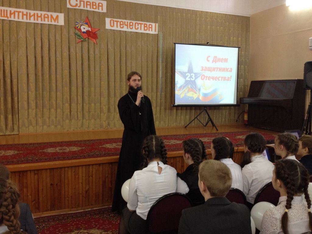 22 февраля в Ликино-Дулевской гимназии состоялся фестиваль патриотической песни, посвященный Дню защитника Отечества. С приветственным словом перед учащимися выступил настоятель Троицкого храма г. Дрезна Ликино-Дулевского благочиния священник Игорь Савелов.