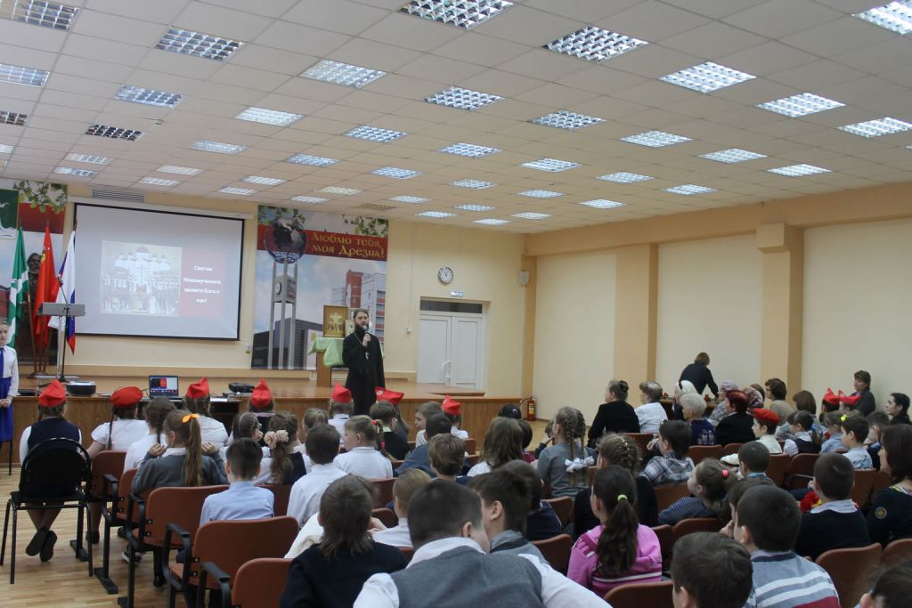 9 марта в Дрезненской средней школе прошла конференция, посвященная памяти новомучеников и исповедников Церкви Русской. Это мероприятие было организовано преподавателями школы, прихожанами Троицкого храма г. Дрезны и Богородицерождественского храма деревни Савостьяново Ликино-Дулевского благочиния. Гостями конференции стали настоятель упомянутых храмов священник Игорь Савелов, заместитель главы администрации г. Дрезны Е.В. Крутова, члены районного и городского совета ветеранов. Школьники рассказали участникам конференции о житии царской семьи, святителя Тихона, Патриарха Всероссийского, священномученика Сергия Скворцова, служившего в Троицком храме г. Дрезны, священномучеников Иоанна Троицкого и Александра Вознесенского, служивших в Савостьяновском храме. После конференции состоялся крестный ход от школы до Троицкого храма. Для ребят отец Игорь провел экскурсию по храму.