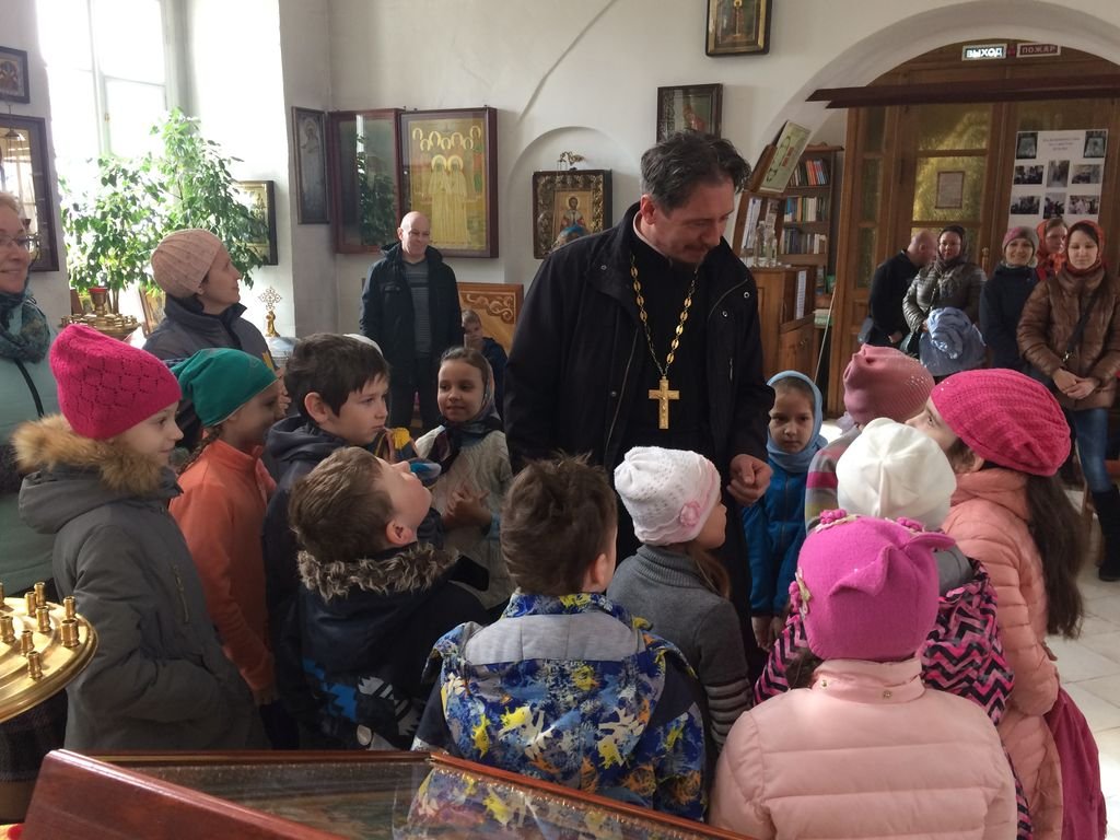 На Светлой седмице во многих храмах прошли выездные уроки для воспитанников детских садов и школьников. 19 апреля в храме Новомучеников и исповедников Церкви Русской мкр. Кучино побывали первоклассники средней школы №8. Настоятель храма священник Иоанн Афанасьев и завуч воскресной школы Людмила Афанасьева провели для ребят экскурсию по храму и рассказали о празднике Воскресения Христова.