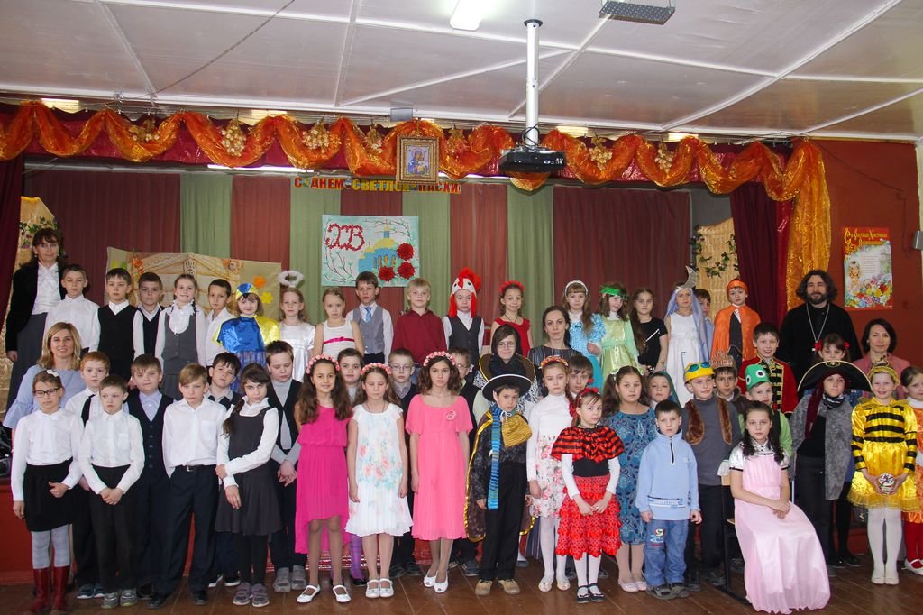 16 апреля силами воспитанников воскресной школы Скорбященского храма г. Лосино-Петровский и ее педагогов было подготовлено и показано прихожанам театрализованное литературно-поэтическое представление, на котором дети читали стихотворения и пели песнопения, а также показали драматургические миниатюры «Император Тиберий» и «Маленькие дети и большой кулич».