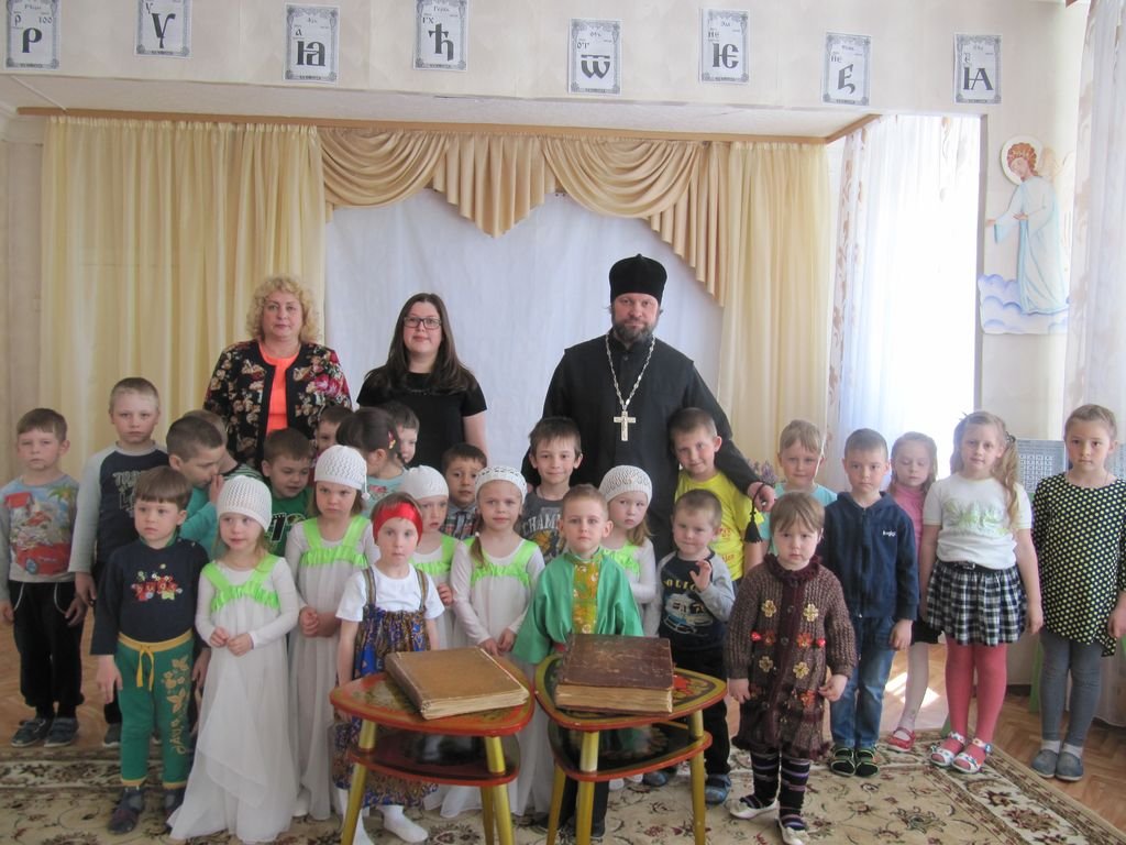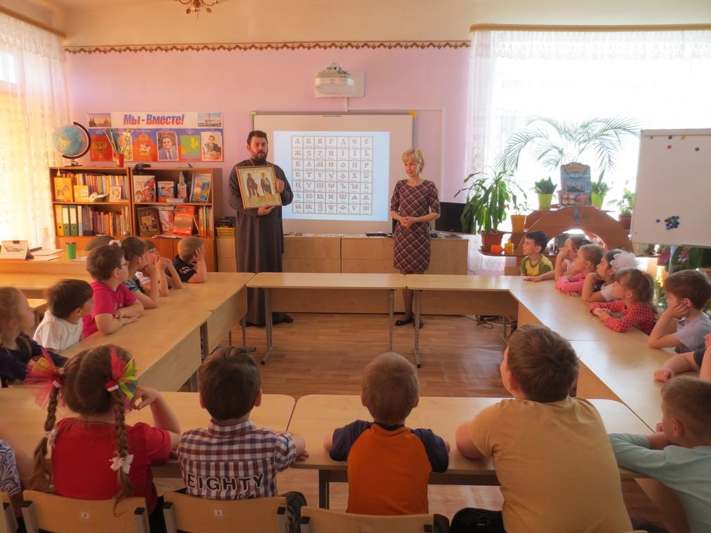24 мая настоятель Казанского храма села Петровское священник Александр Ионов встретился с воспитанниками детского сада деревни Левошево. Священник рассказал будущим школьникам о равноапостольных Кирилле и Мефодии и познакомил их с церковнославянской азбукой.