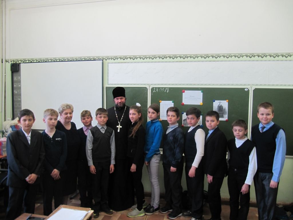 24 мая учащиеся средней школы мкр. Керва г. Шатуры посетили Спасо-Преображенский храм села Андреевские Выселки. Настоятель храма иеромонах Петр (Чернышов) провел с ребятами занятие о значении письменного слова в жизни человека и рассказал о просветителях славян – равноапостольных Кирилле и Мефодии.