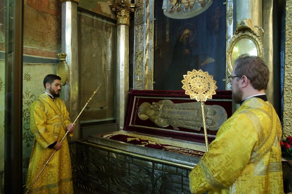 По завершении Литургии духовенство совершило славление святителю Ионе у раки с его честными мощами.