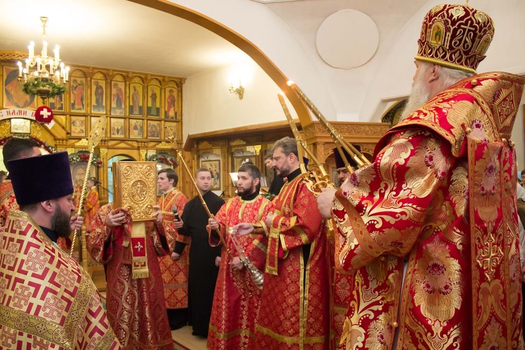 В начале дня Его Преосвященство возглавил Божественную литургию в Казанском храме села Петровское. Ему сослужили благочинный Шатурского церковного округа священник Владислав Решетников, благочинный