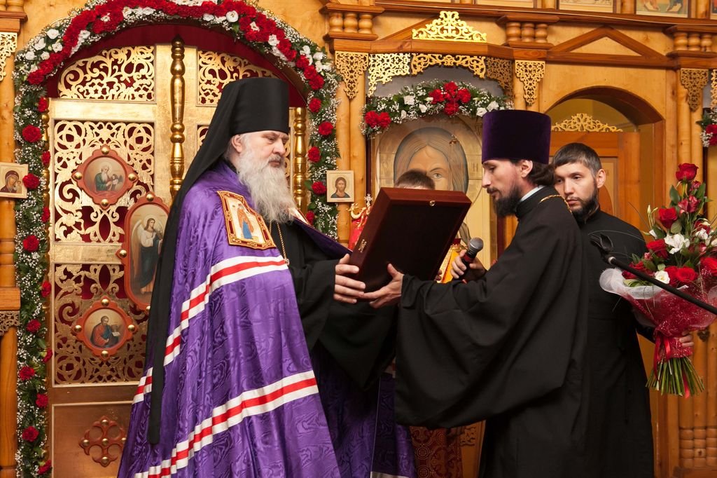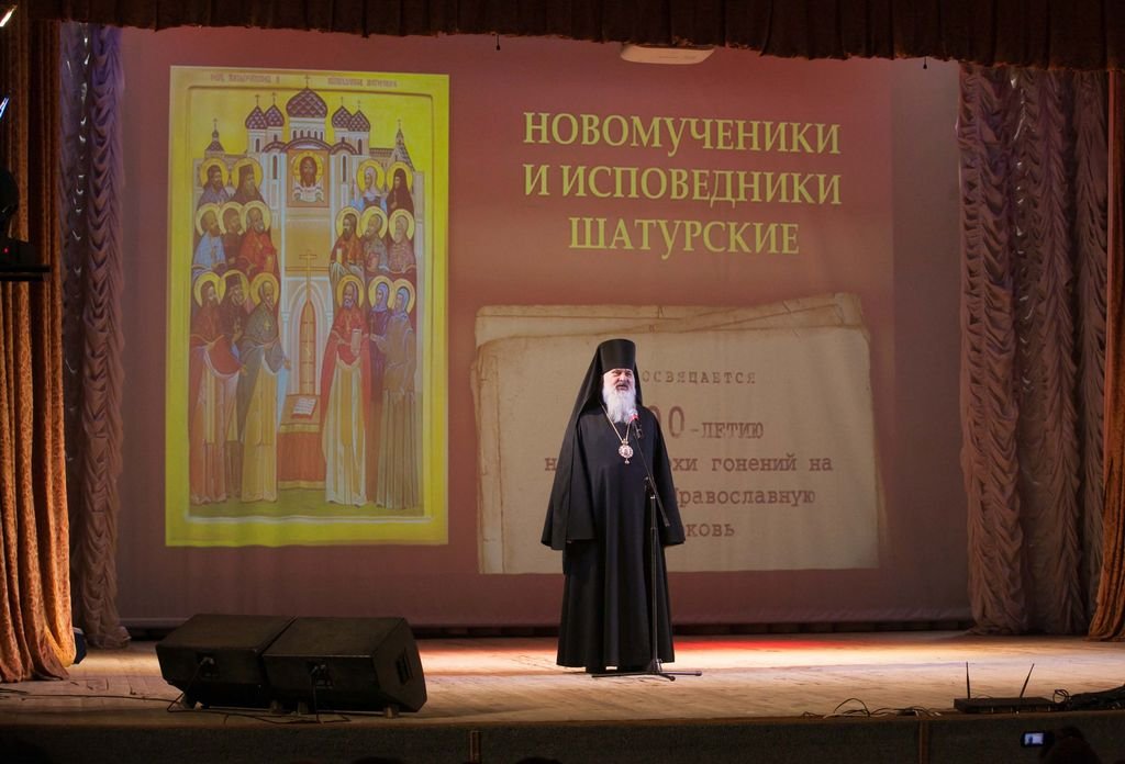 По окончании богослужения епископ Тихон обратился к собравшимся с архипастырским словом. Благочинный Шатурского церковного округа священник Владислав Решетников преподнес в дар Владыке икону собора новомучеников и исповедников Шатурских. Затем у обелиска Славы, который расположен на территории храма, епископ Тихон совершил заупокойную литию по павшим в годы Великой Отечественной войны. Владыка поздравил присутствующих на богослужении ветеранов и вручил им памятные подарки. Программу торжеств продолжило мероприятие «Встреча поколений», которое состоялось во дворце культуры им. Нариманова. Во встрече приняли участие родственники новомучеников, духовенство и представители городской системы образования. На встрече была представлена презентация работ учащихся школ Шатурского округа про новомучеников и исповедников Церкви Русской. В фойе дворца культуры Владыка Тихон познакомился с выставкой работ учащихся школ города и воскресных школ благочиния о новомучениках и исповедниках Шатурских. В актовом зале состоялся концерт, посвященный новомученикам и исповедникам Шатурским. Среди гостей праздника были представители общественности, духовенство благочиния, учащиеся школ городского округа, родственники новомучеников и жители Шатуры. Его Преосвященство вручил памятные подарки наиболее отличившимся участникам конкурса, посвященного новомученикам.