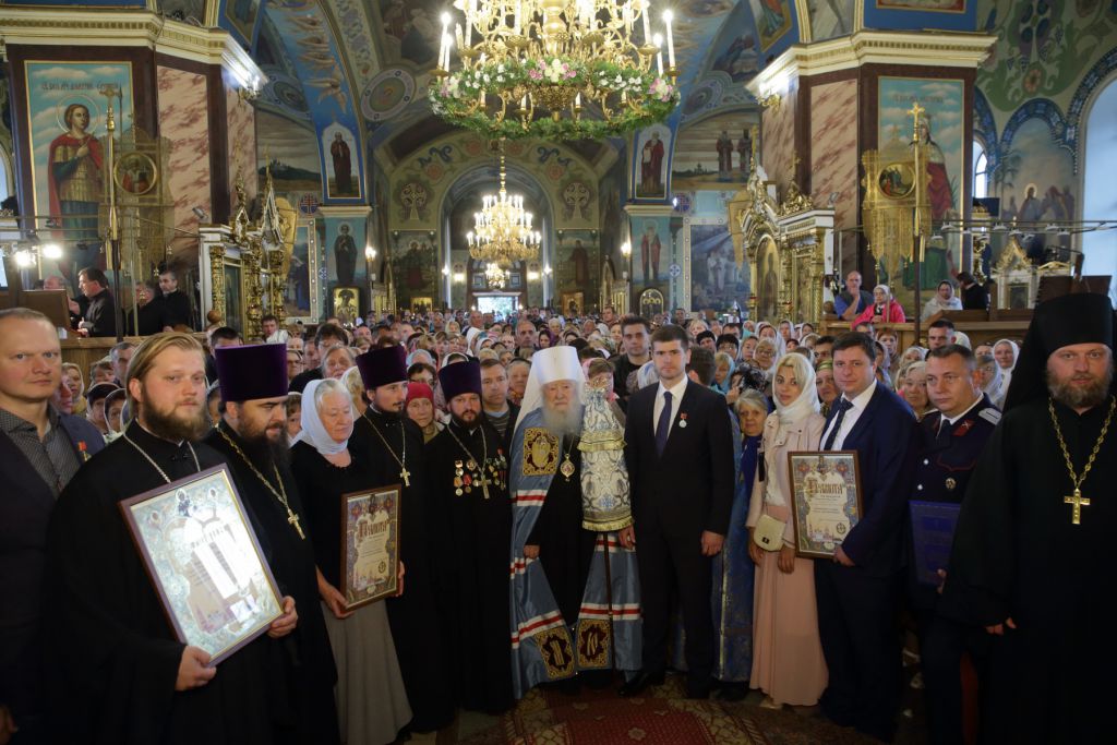 Я хотел бы также отметить выдающиеся труды тех, кто трудится на этой земле — и священнослужителей, и мирян — по созиданию храмов Божиих, по проповеди слова Божия, и отцу благочинному я вручаю медаль „За жертвенные труды“ III степени». Владыка митрополит вручил награды Московской епархии труженикам и жертвователям храма: глава города Орехово-Зуево Г. О. Панин был удостоен медали «За жертвенные труды» III степени, А. В. Кузнецов — медали «За жертвенные труды» II степени, М. В. Кауров — медали «За жертвенные труды» II степени, Е. В. Старшов — медали «За жертвенные труды» II степени, М. В. Коробкова — медали «За жертвенные труды» III степени. Благотворители и труженики храма были удостоены благодарственных и благословенных грамот митрополита Ювеналия.