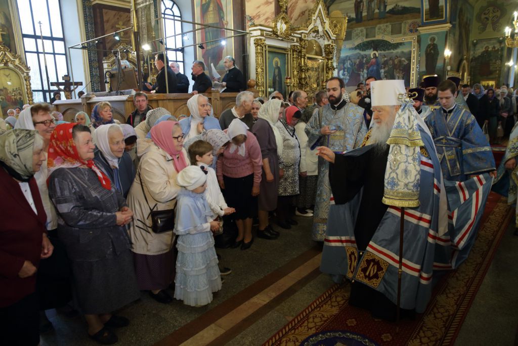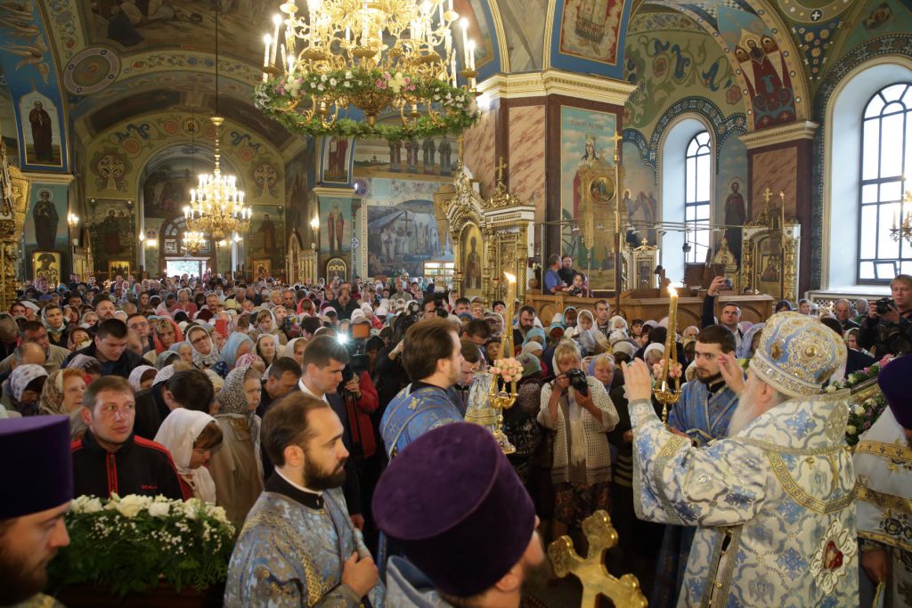 Далее с архипастырским словом к духовенству и прихожанам обратился митрополит Ювеналий: «Дорогой отец Андрей, всечестные отцы, дорогой Геннадий Олегович, возлюбленные и дорогие братия и сестры! Меня очень воодушевило то, что я увидел сегодня переполненным этот исторический храм. Для меня это великий дар Божий, потому что в этом году мы вспоминаем столетие начала гонений на Русскую Православную Церковь. Не избежала этой участи и сия благословенная земля, обагренная кровью священнослужителей и мирян, которые отстаивали свою веру, свои убеждения, свои святыни. И вот, молитвами новомучеников и исповедников Церкви Русской процветает и возвращается к вере народ наш. Церковь укрепляется и продолжает свое спасительное служение. Мне хочется от души поздравить вас с двунадесятым праздником Рождества Пресвятой Владычицы нашей Богородицы. Обычно у нас принято в семье среди близких, дорогих людей отмечать дни своего рождения. А вот Рождество Пресвятой Богородицы — это наш всеобщий праздник, почему и сегодня мы во множестве собрались в храм Божий, испрашивая благословения Пресвятой Девы Марии. Мы обращаем внимание на то, что Пресвятая Дева родилась от престарелых Иоакима и Анны как плод их святости, молитвы и упования, как свидетельство того, что для Бога нет невозможного. Мы духовно торжествуем вместе со святыми Богоотцами Иоакимом и Анной, которым Господь дал Дщерь — Пресвятую Деву. Которая при посещении своей родственницы Елисаветы сказала пророческие слова: „Отныне ублажат Мя вси роди!“ (Лк. 1: 48). Проходят века, сменяются поколения, разные обстоятельства случаются в жизни Церкви, но почитание Пресвятой Девы остается неизменным, постоянным и утешительным для рода христианского. Я счастлив, что Орехово-Зуевское благочиние дает пример доброго соработничества, когда священнослужители и власти не только вместе отмечают праздники, но и рука об руку трудятся на благо жителей этого благословенного края. Я горячо и сердечно благодарю выступавших за поздравления, за высокую награду, которую мне вручил Геннадий Олегович, за Ваш дар, и мне хочется от души пожелать всем вам, братия и сестры, милостей от Пресвятой Девы Марии, чтобы вы всегда знали, что во все дни жизни вашей у вас есть Заступница Усердная, как мы именуем Царицу Небесную. Причастников и причастниц я поздравляю с принятием Святых Христовых Таин. Поздравляю вас с престольным праздником этого великолепного собора и присоединяюсь, может быть, к запоздалым, но сердечным поздравлением жителям Орехово-Зуево в связи со столетием этого благословенного града. Я возношу горячие молитвы к Пресвятой Деве, чтобы Она хранила в мире и благоденствии всех жителей, всех православных христиан этого святого града, и чтобы Господь слышал и исполнял предстательством Богоматери наши молитвы, обращенные к Нему.