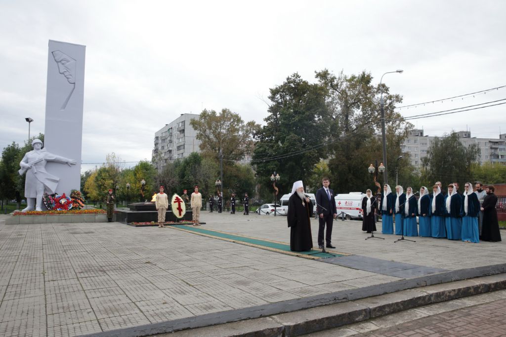 Затем Владыка Ювеналий и духовенство проследовали к памятнику героям Великой Отечественной войны, где возложили цветы и возгласили «Вечную память». Обращаясь к присутствующим, Владыка митрополит сказал: «Дорогой Геннадий Олегович, наши любимые и дорогие ветераны, братья и сестры! Я глубоко тронут этой памятной молитвенной встречей. Мы только что совершили в соборе престольное празднование Рождества Пресвятой Богородицы. Но мне хотелось обязательно сегодня встретиться и с вами. Вы уже отметили 100-летие Орехово-Зуево. Я горячо присоединяюсь ко всем, кто вас чествовал, поздравлял, кто с вами в радости отмечал этот день. Мы никогда не сможем забыть страшных дней Великой Отечественной войны, когда нашу землю постигло тяжкое испытание. Я вспоминаю свое раннее детство, когда от ужаса, прижимаясь к груди матери, я рыдал, слыша бомбежку и взрывы на нашей улице в Ярославле, после которой остались руины, но милостью Божией бомбы не коснулись нашего дома. Каждый год, когда мы отмечаем День Победы, мы с глубокой благодарностью молимся о наших погибших воинах, с глубочайшим уважением и любовью вспоминаем наших ветеранов и радуемся, что они своим присутствием напоминают нынешнему поколению о героизме нашего народа, о мужестве, о любви к Родине, которая может победить любого врага. Хочется сказать об этом сегодня, когда небо заволакивается тучами из-за рубежа, и сказать, что мы твердо стоим на страже мира и исполнены любви к своей Родине. Вечная слава героям, павшим в боях за свободу и независимость Отечества! Я рад, что в столетний юбилей Орехово-Зуево я нахожусь с вами, чтобы помолиться за этот город и его жителей, чтобы призвать Божие благословение на ваш мирный созидательный труд. Пусть Господь даст вам и здравие, и во всем благое поспешение, и хранит вас на многая и благая лета!»