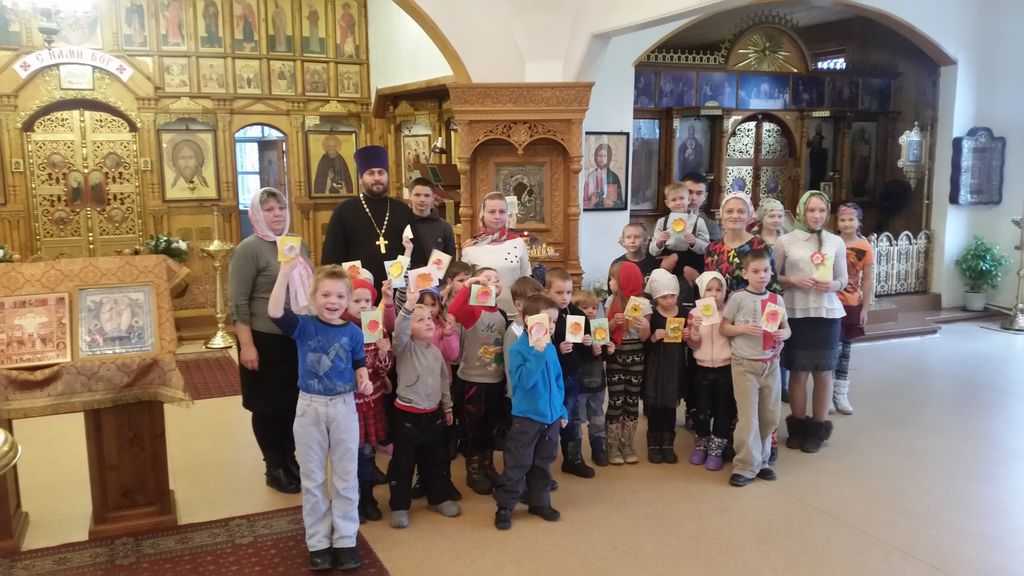 31 октября в Казанском храме села Петровское состоялся открытый урок воскресной школы для подготовительной группы детского сада деревни Левошево. Мероприятие началось с экскурсии по храму. Затем дети приняли участие в мастер-классе по изготовлению открыток ко Дню матери.