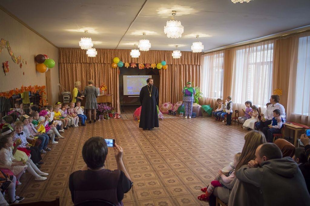 25 октября настоятель Крестовоздвиженского храма поселка Мишеронский священник Иоанн Депутатов посетил утренник, посвященный «Празднику осени», в детском саду №5 «Катюша» г. Рошаля.