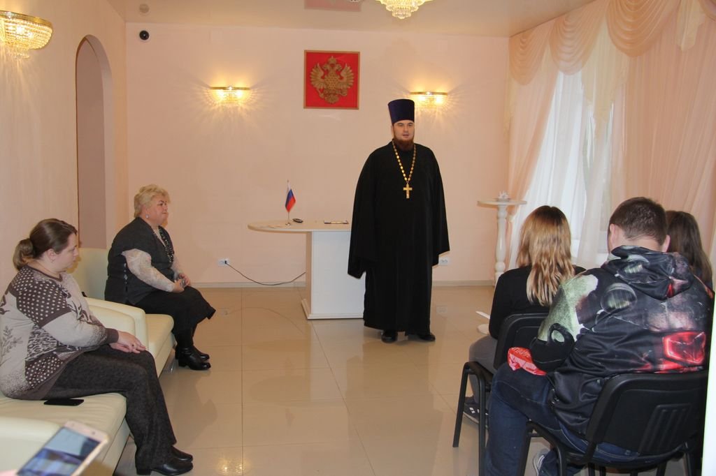 22 ноября в отделении №2 г. Ликино-Дулево Орехово-Зуевского районного ЗАГС состоялась встреча со студентами Ликино-Дулевского политехнического колледжа, посвященная Дню матери. Перед ребятами выступили начальник отделения ЗАГСа Т.А. Базанова, психолог центра гражданско-патриотического воспитания молодежи «Спектр» О.П. Коршунова, настоятель Серафимовского храма деревни Юркино священник Александр Куприянов.
