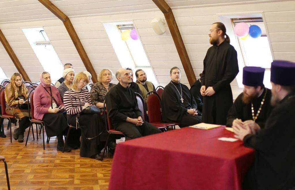 2 декабря в актовом зале Православной гимназии имени сщмч. Константина Богородского г. Ногинска благочинный протоиерей Марк Ермолаев встретился с сотрудниками приходов Богородского церковного округа, выпускниками и слушателями Епархиальных миссионерско-катехизаторских курсов. На встрече обсуждались рабочие вопросы, планы и задачи на будущий 2018 год. Своими предложениями по развитию миссионерской работы в благочинии поделились штатный миссионер Богоявленского собора Ногинска Андрей Бобров и клирик Тихвинского храма Ногинска священник Алексий Кутейников.