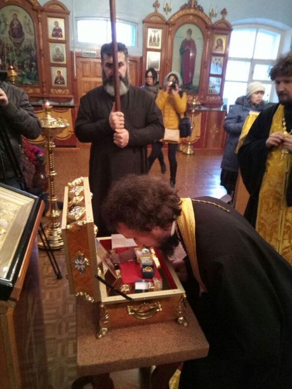 16 декабря в храм иконы Божией Матери «Всех скорбящих Радость» г. Рошаля были доставлены частицы мощей святителя Николая Чудотворца, апостола Андрея Первозванного и праведного Алексия, человека Божия. Святыню встречали благочинный Шатурского церковного округа священник Владислав Решетников, клирик храма священник Максим Вараев, глава города Алексей Артюхин, сотрудники администрации и СМИ.