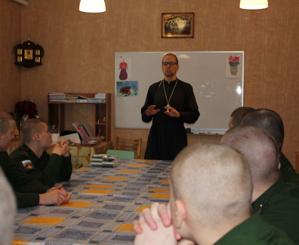 19 декабря военнослужащие срочной службы войсковой части № 28289 посетили богослужение в Александро-Невском храме г. Ногинск-9. После богослужения в помещении воскресной школы настоятель храма священник Александр Лупанов провел беседу с военнослужащими на тему «Нравственные ценности и воинское служение».