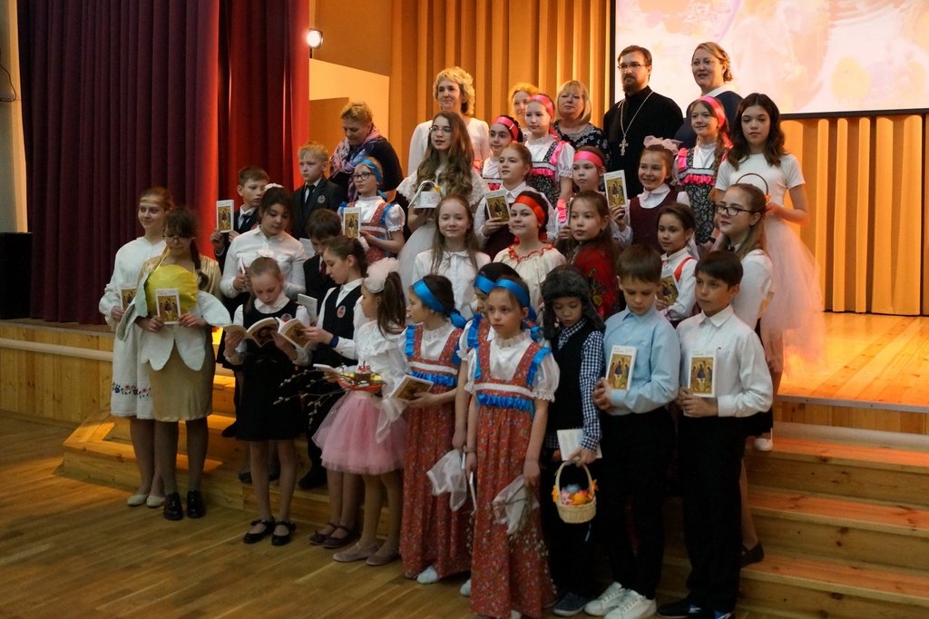 В актовом зале Преображенского храма мкр. Саввино состоялся концерт учащихся воскресной школы. Настоятель храма протоиерей Виталий Кулешов праздничным поздравлением открыл концертную программу. На праздник были приглашены многодетные семьи. Пришедшие могли познакомиться с выставкой творческих работ, выполненных воспитанниками воскресной школы.