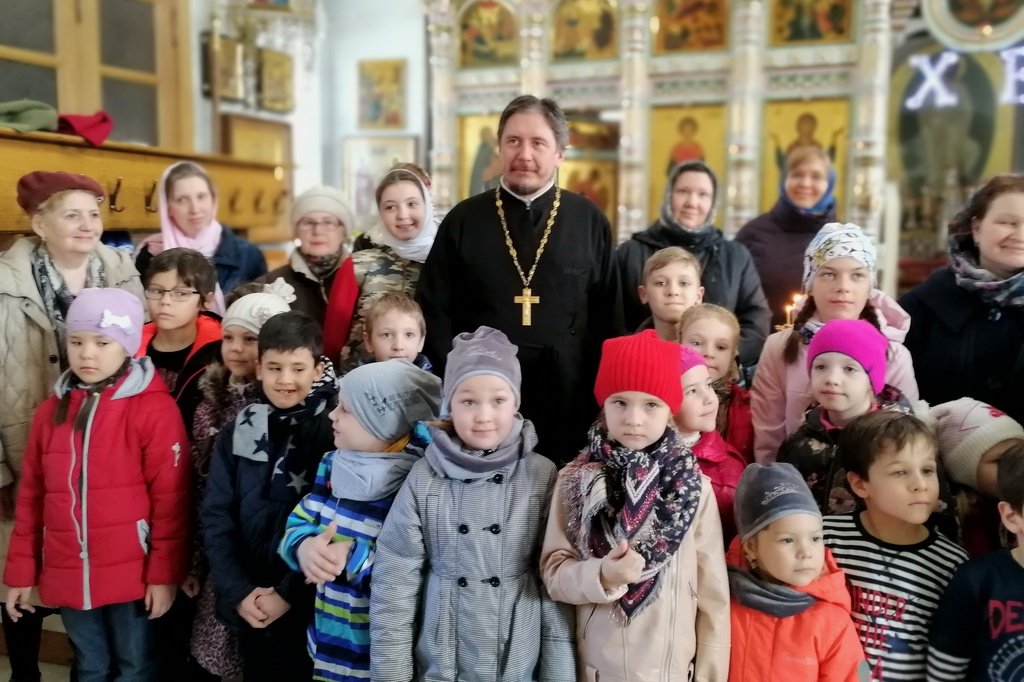 В Никольский храм деревни Полтево вместе с родителями и воспитателем Н.Ю. Гребеньковой пришли воспитанники детского сада «Сказка» мкр. Железнодорожный. Гостей встретил настоятель храма священник Иоанн Обрембальский, который провел юеседу о празднике.