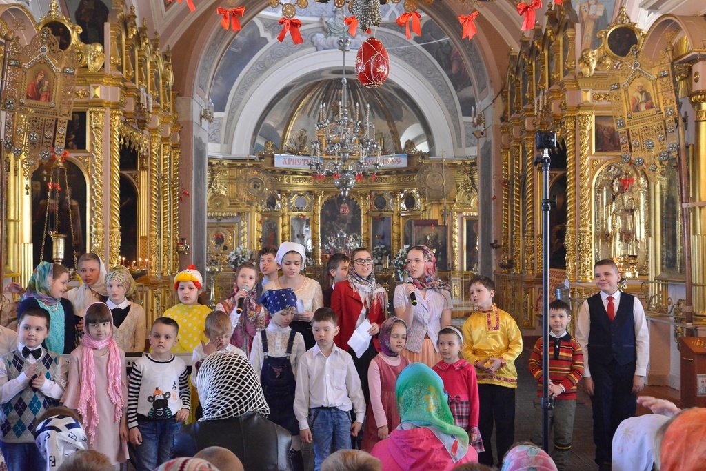 14 апреля в Никольском храме г. Лосино-Петровский прошла миссионерская Литургия для детей, в ходе которой настоятель храма священник Павел Галушко пояснял прихожанам духовный смысл церковного богослужения. После крестного хода учащиеся воскресной школы поздравили прихожан и гостей храма – воспитанников детского дома «Остров добра» – с Воскресением Христовым и представили вниманию зрителей концертную программу.