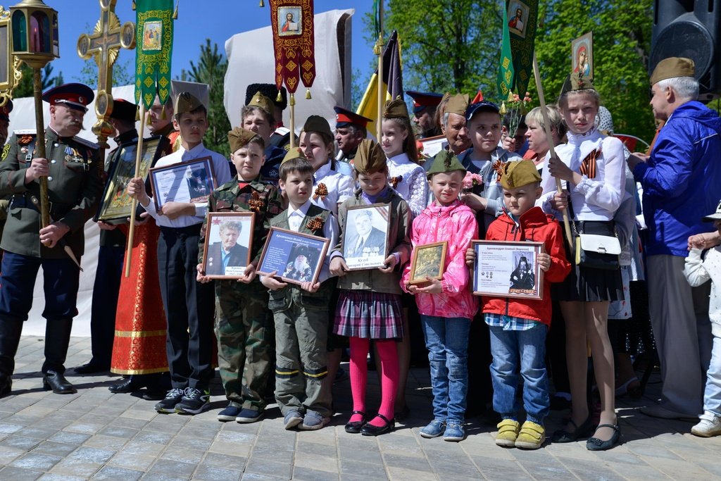 В Никольском парке г. Лосино-Петровский был открыт новый мемориальный комплекс павшим защитникам Отечества. От Никольского храма к памятнику прошел крестный ход во главе с благочинным Лосино-Петровского церковного округа священником Павлом Галушко. Учащиеся воскресной школы Никольского храма несли фотографии священнослужителей – ветеранов Великой Отечественной войны. Во время торжественного митинга состоялось открытие мемориала. В церемонии открытия приняли участие ветераны. С Днем Победы горожан поздравили исполняющий обязанности главы городского округа Олег Фетюков, председатель совета депутатов Татьяна Голод, председатель совета ветеранов Людмила Тюрина, благочинный Лосино-Петровского церковного округа священник Павел Галушко. У мемориала была совершена заупокойная лития. Затем прихожане, учащиеся воскресной школы и жители города приняли участие в шествии «Бессмертного полка».
