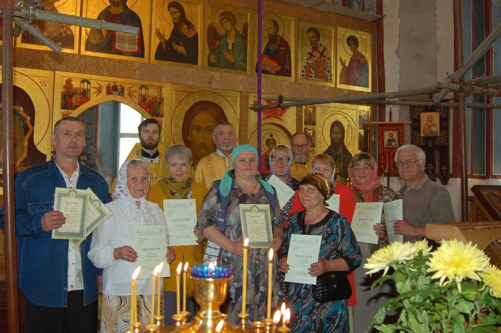 31 мая в Богородицерождественском храме села Анискино состоялось торжественное вручение свидетельств об окончании Библейско-богословских курсов имени преподобного Сергия Радонежского. Преподаватель курсов священник Валерий Очеретний совершил благодарственный молебен.