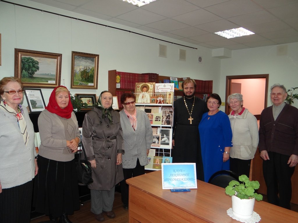 23 сентября в православном духовно-просветительском центре «Благовест» г. Щелково состоялось новое занятие православного клуба «Преображение». В работе клуба принял участие духовник центра священник Евгений Трушин. Отец Евгений рассказал участникам клуба о празднике Рождества Пресвятой Богородицы. Продолжила работу клуба сотрудник центра «Благовест» С.А. Иванова, представившая рассказ о святом Цесаревиче Алексии в рамках проекта «Избранники России». К заседанию клуба была оформлена православная книжная выставка.