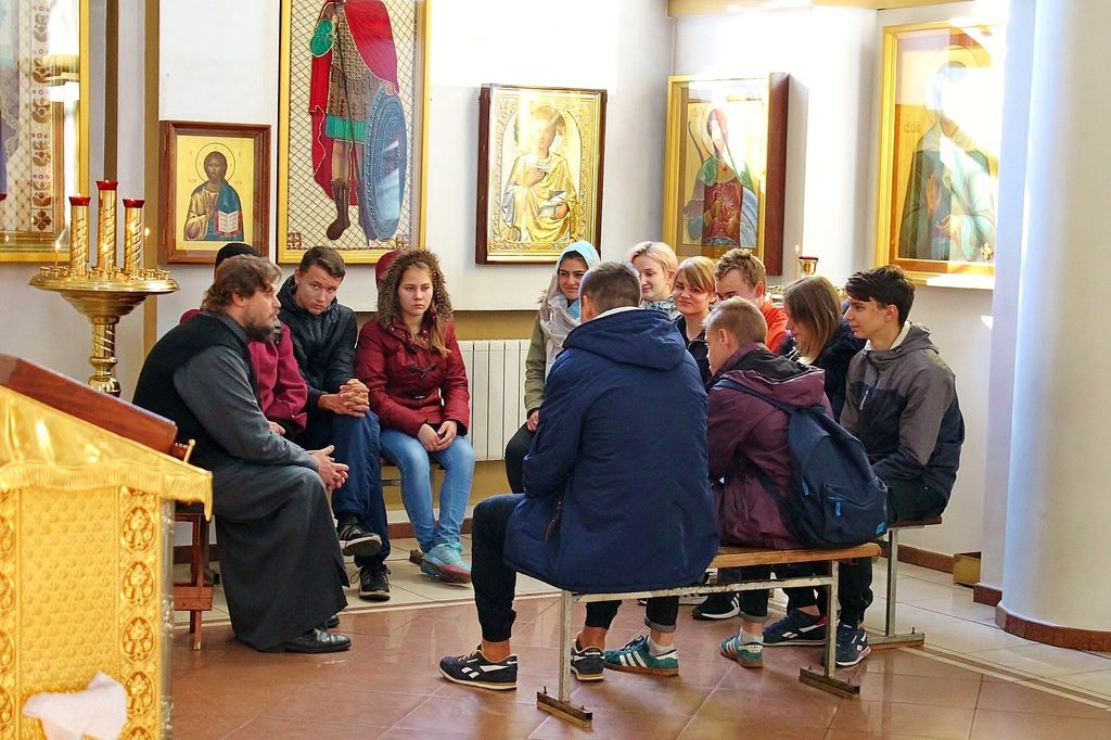 11 октября в храм во имя Новомучеников и исповедников Церкви Русской мкр. Кучино г.о. Балашиха пришли студенты третьего и четвертого курсов метеорологического факультета Гидрометеорологического техникума г. Балашихи с преподавателями Т.М. Степахиной и Е.Н. Пишняк. Клирики храма протоиерей Сергий Каплин и диакон Андрей Владимиров рассказали ребятам об устройстве православного храма, о Крестной жертве Спасителя, о Таинствах Церкви, о подвиге новомучеников. На память ребята получили в подарок книги «Азы православной веры», «Закон Божий», а также брошюры «О вреде сквернословия и курения».