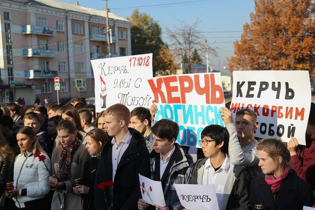 18 октября на площади Победы г. Ногинска прошел траурный митинг, посвященный трагическим событиям в Керчи — городе-побратиме Ногинска. На площади собрались представители администрации, члены совета депутатов Богородского края, представили общественных организаций, молодежь. Среди выступивших на митинге со словами поддержки и соболезнования жителям Керчи был помощник благочинного Богородского церковного округа священник Александр Анохин. К памятному знаку города Керчь в мемориальном комплексе на площади Победы были возложены цветы.
