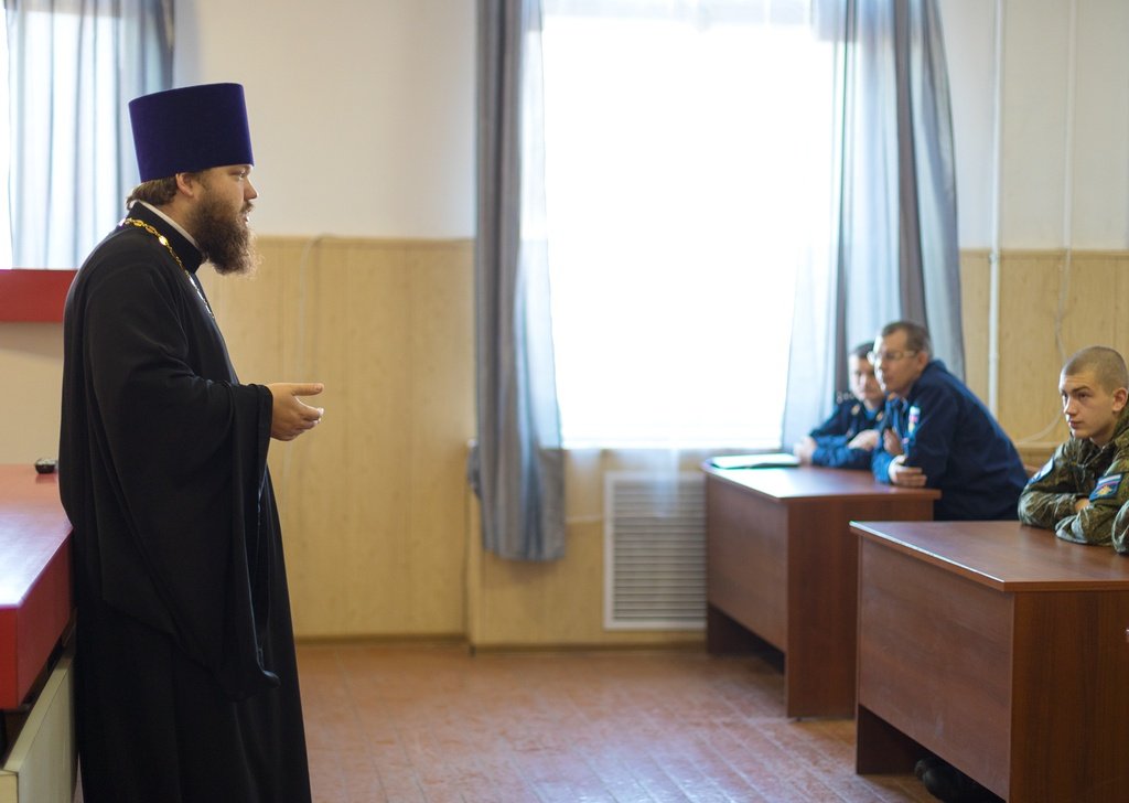 22 октября заместитель председателя Епархиального отдела по взаимодействию с Вооруженными силами и правоохранительными учреждениями священник Александр Анохин провел с военнослужащими войсковой части № 93810 беседу на тему «Понятие греха».
